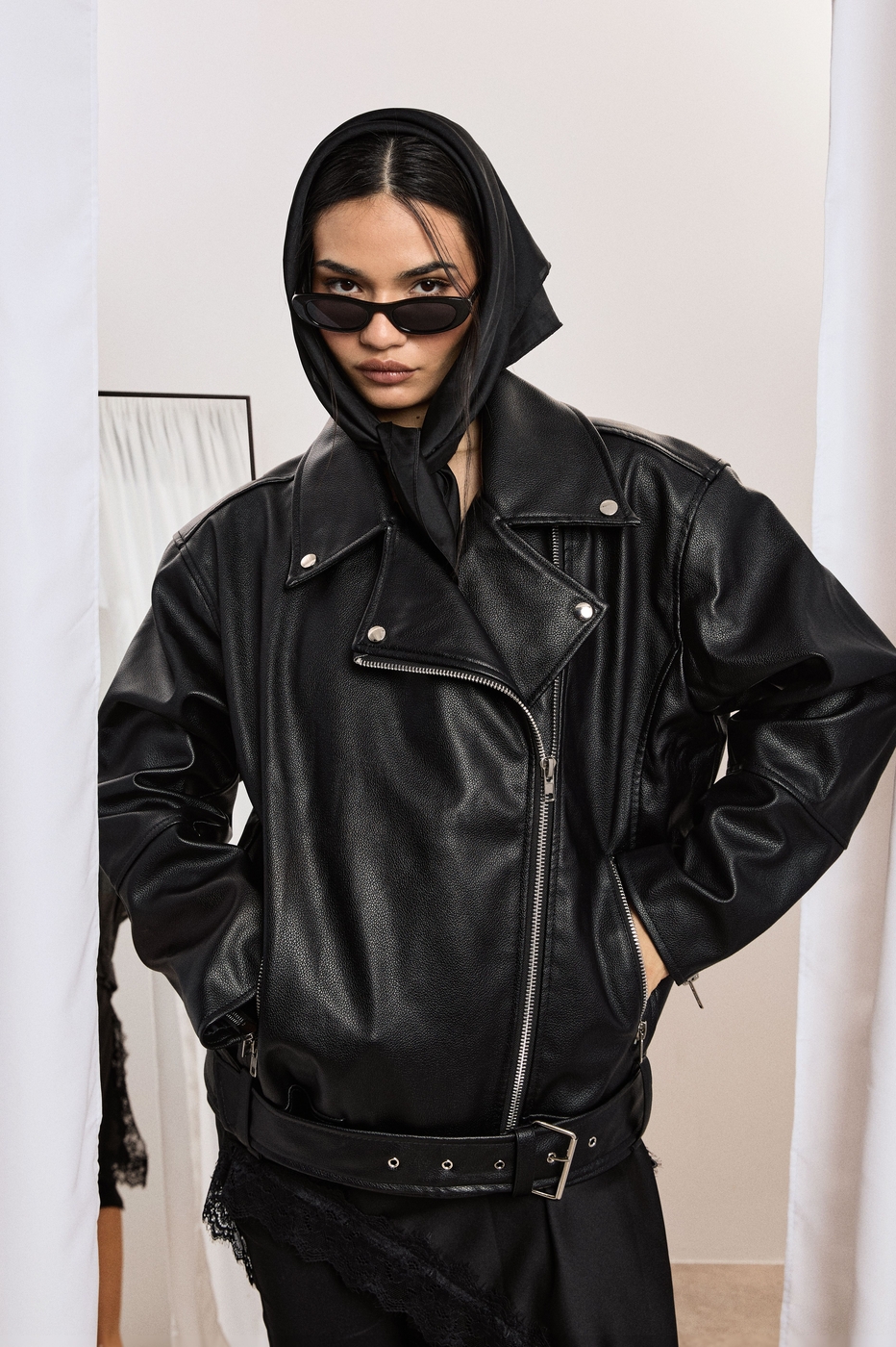 boohoo Super Oversized Belted Biker Jacket