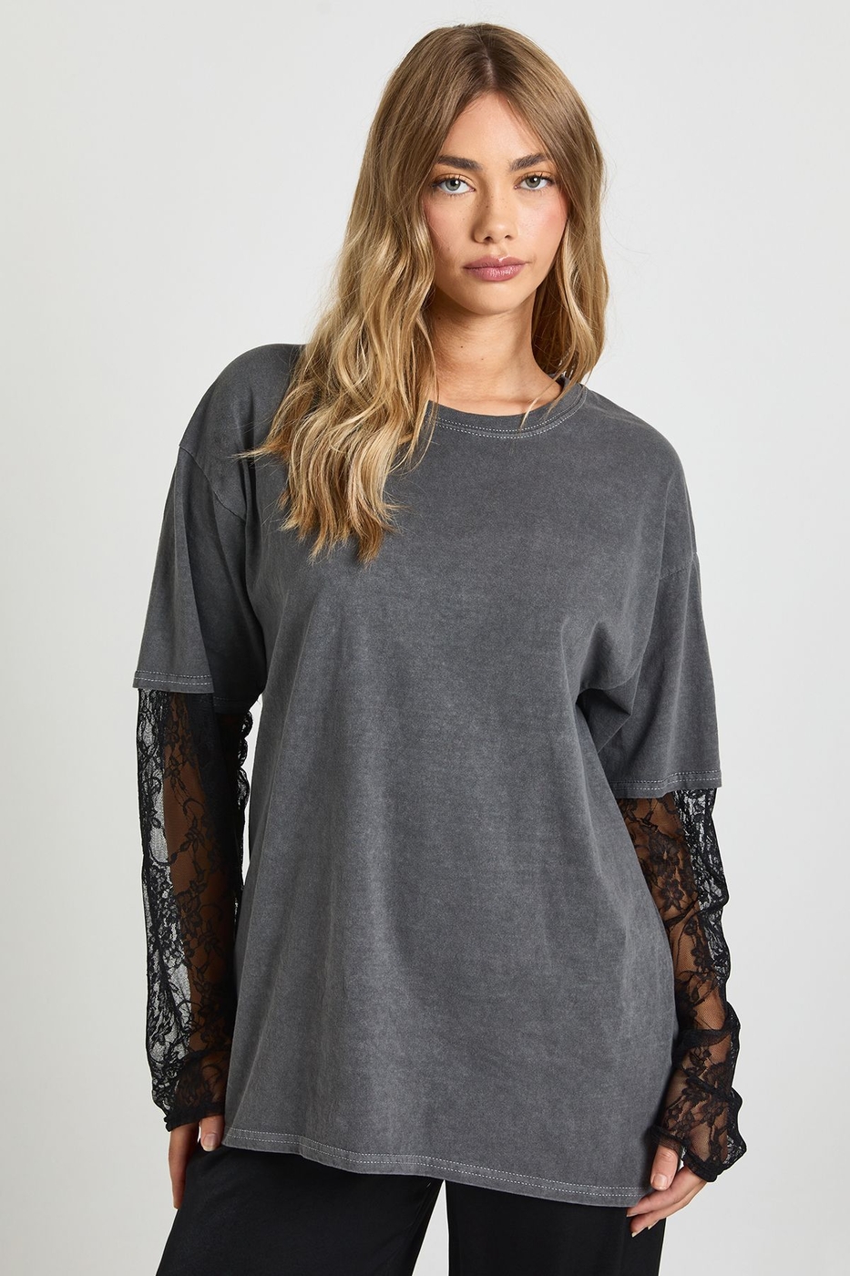 boohoo Lace Sleeve Insert Oversized T-shirt
