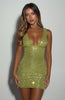 White Fox Boutique Looking A Million Dollars Embellished Mini Dress Beige