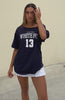 White Fox Boutique Everything In Time Off Shoulder Oversized Tee Navy