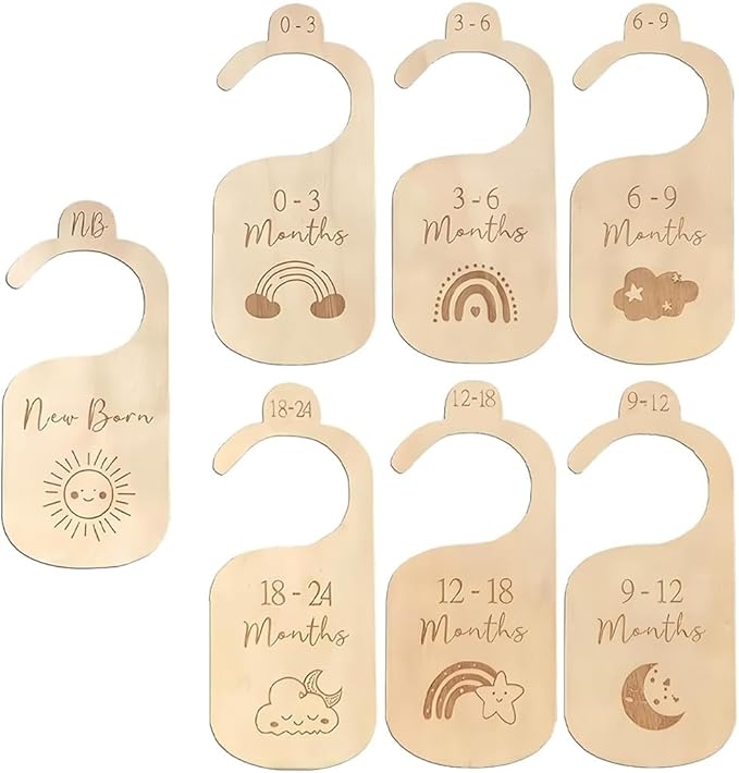 Brand: XUKZIMA XUKZIMA 7 Pcs Wood Nursery Wardrobe Dividers by Size Age Hanger Divider Closet Clothes Organiser Labels Wardrobe Separators for Newborn Gifts Baby Shower Expecting Mothers Girl Boy Elephant