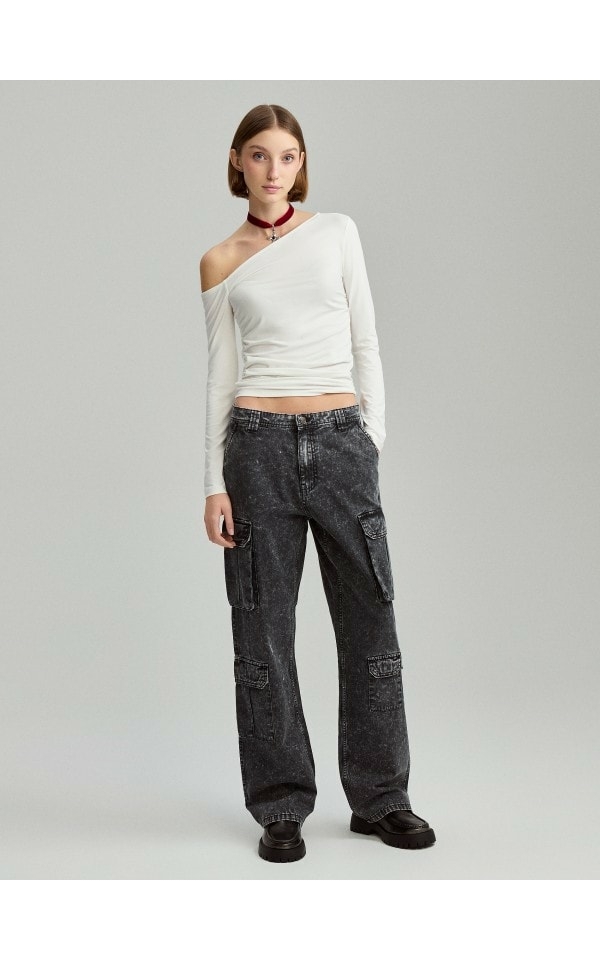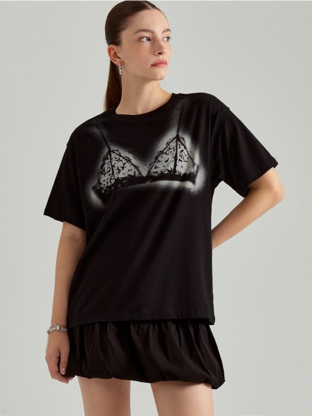 House Luźna koszulka w kolorze czarnym z nadrukiem biustonosza