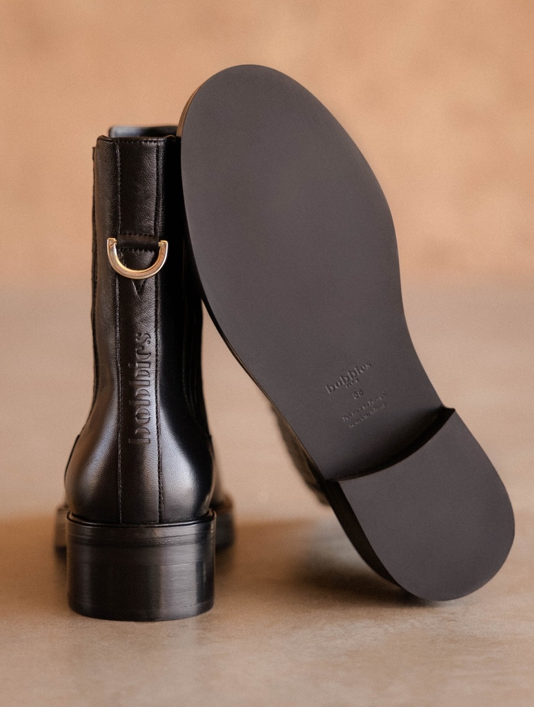 BOBBIES Enora Noir Passion - Bottes à talon mi-hauteur en cuir noir