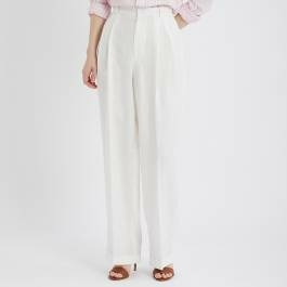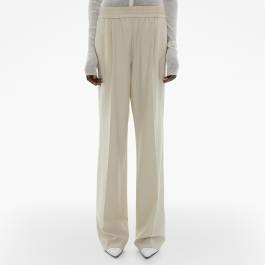 HELMUT LANG Cream Logo Tapered Wool Blend Trousers