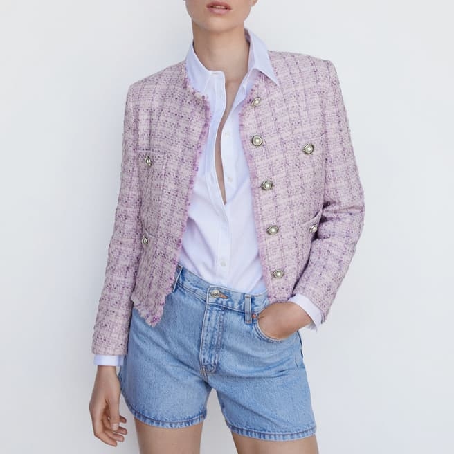Mango Light/Pastel Purple Pocket Tweed Blazer