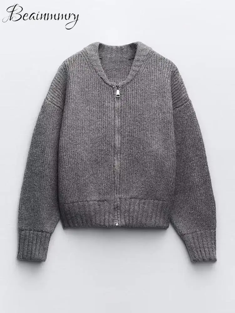 Lovely Ran Женский однотонный свитер на молнии с круглым вырезом