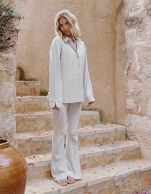 The Frolic x Lyds Butler Sandy mix & match slouchy pyjama shirt in grey marl - LGREY
