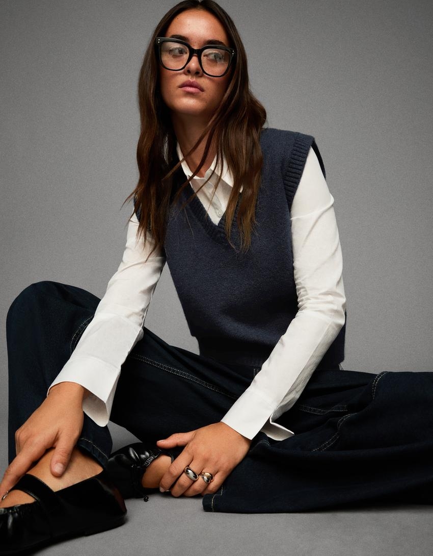 bershka Елек с шпиц деколте и мек на допир ефект