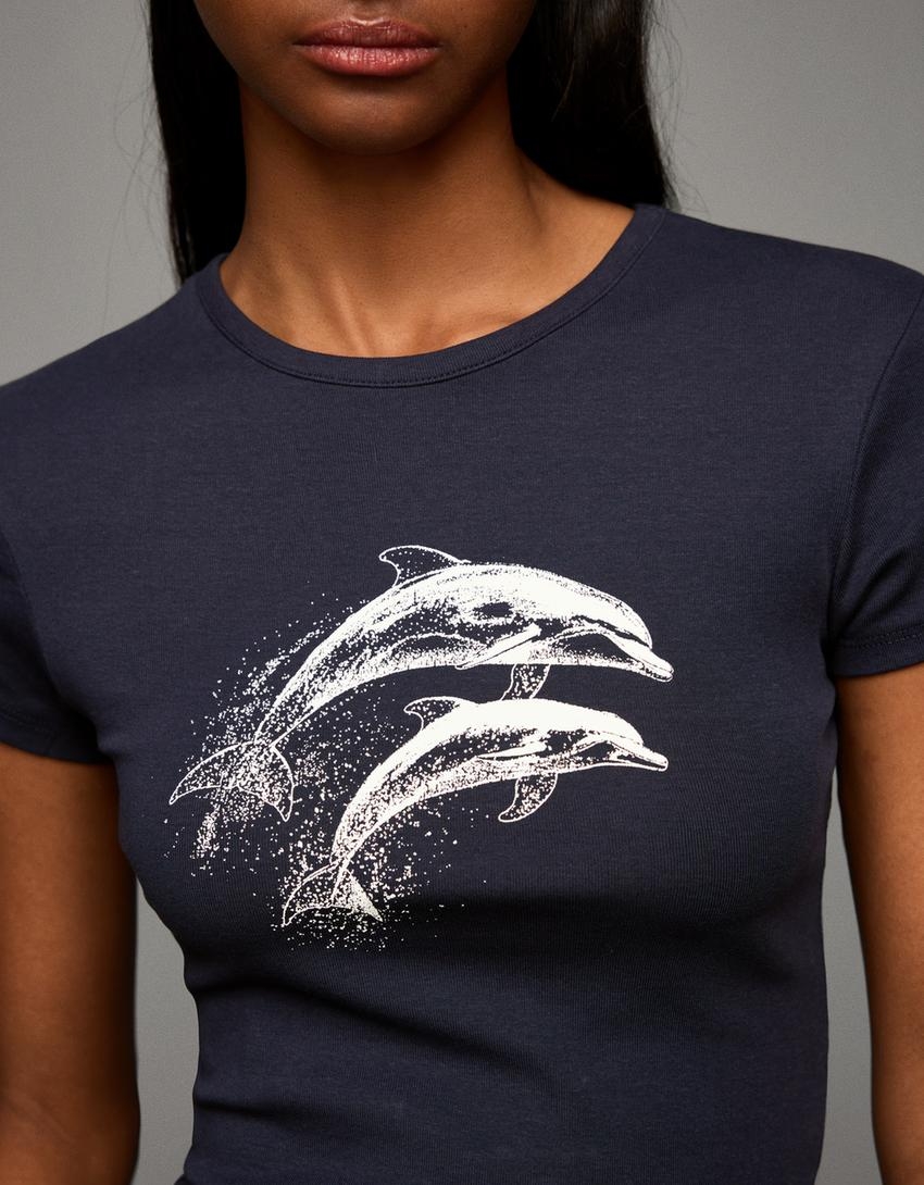 bershka Фланелка с къс ръкав и щампа