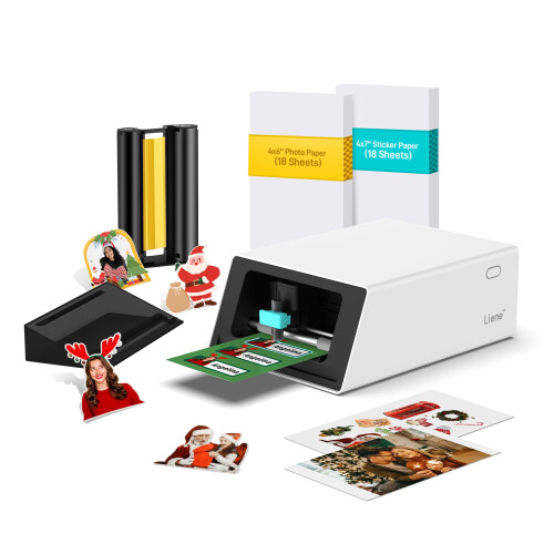 Liene PixCut S1 Color Sticker Printer & Cutting Machine - All-in-One Sticker Maker for DIY Crafts Custom Labels & Gifts. Thermal Dye-Sublimation Pho
