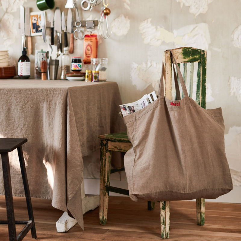 V01 Merci - Tote Bag en coton - Bleu, Marron & Vert