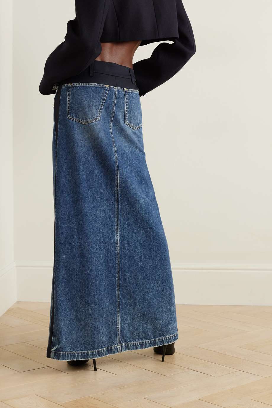 Denim and wool-twill maxi skirt